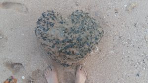 rocher en forme de cœur sur la plage